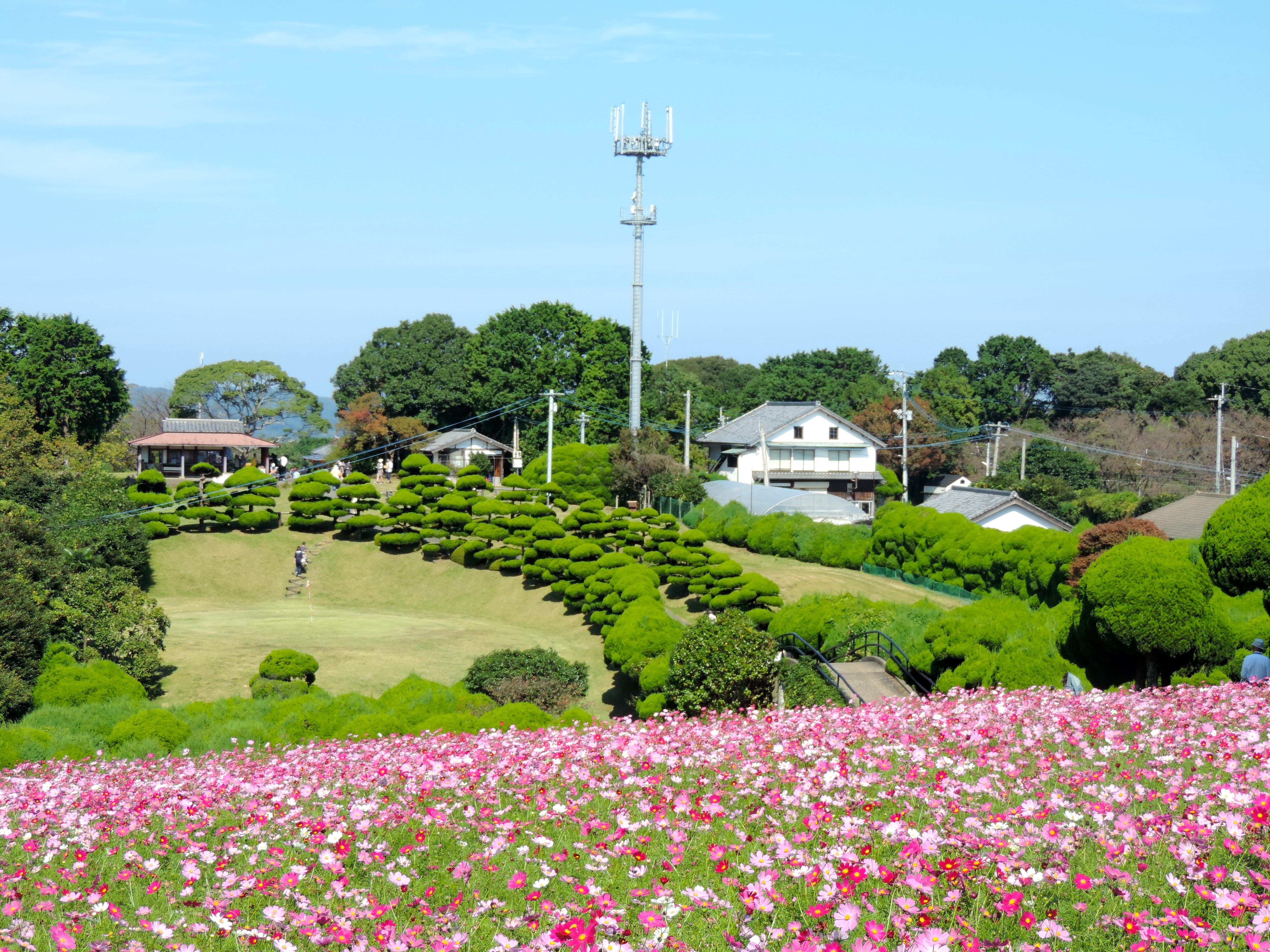 Imagine walking through a stunning field of colorful flowers overlooking an endless stretch of serene blue waters, the fresh scent of pine trees in the air. That is what awaits you at Nokonoshima Island Park in Fukuoka, Japan, the most scenic park I have ever visited. It was opened to the public in 1969 by Kosaku Kubota, who wanted people to enjoy the natural scenery around them. Everywhere you turn, there are gorgeous vistas, many of which extend to views of Hakata Bay.