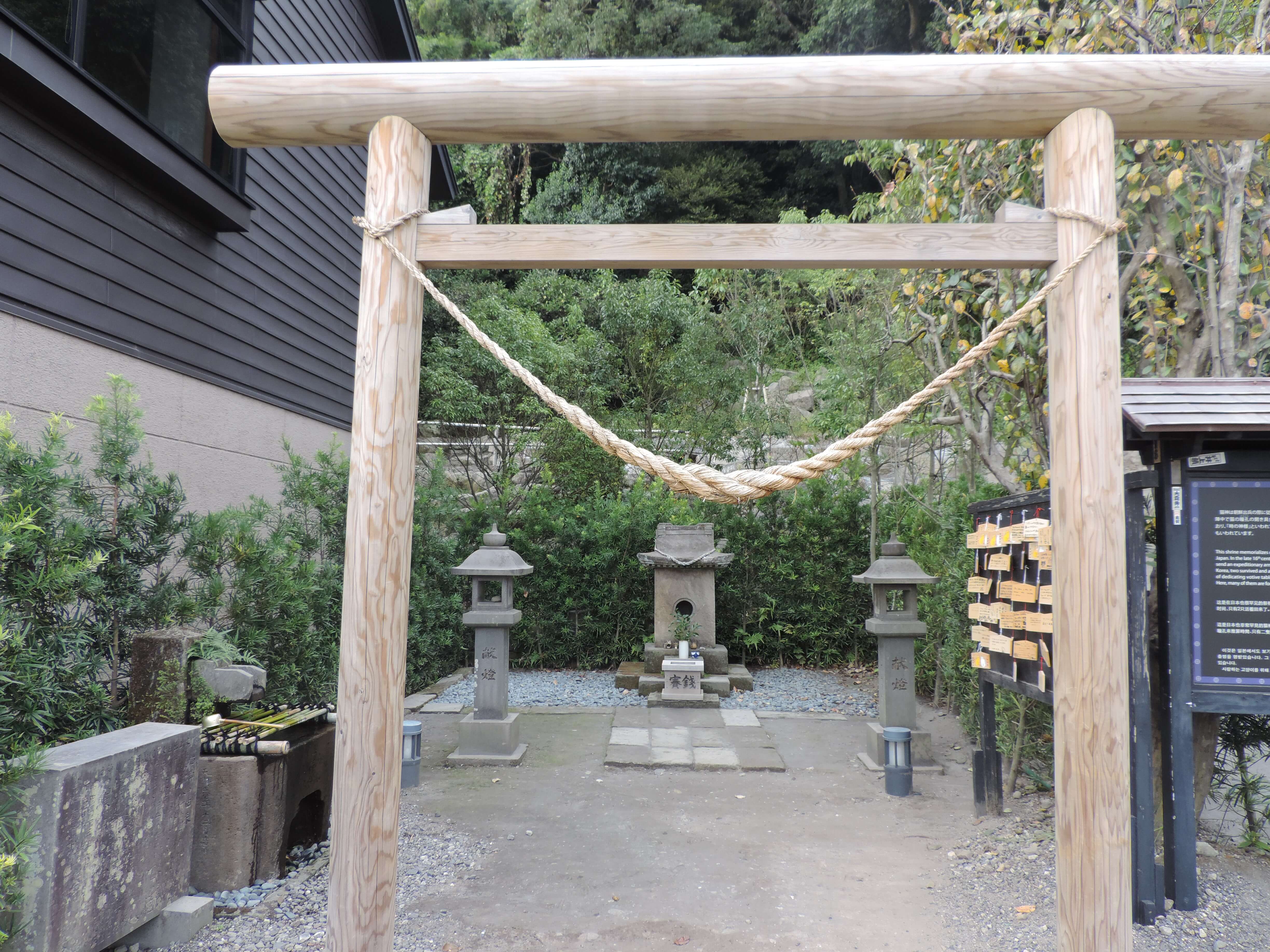 The story behind its creation is that Shimadzu Yoshihiro took an expeditionary army to Korea and brought seven cats with him. Unfortunately, only two survived. Those two cats are enshrined in this area of Sengan-en.