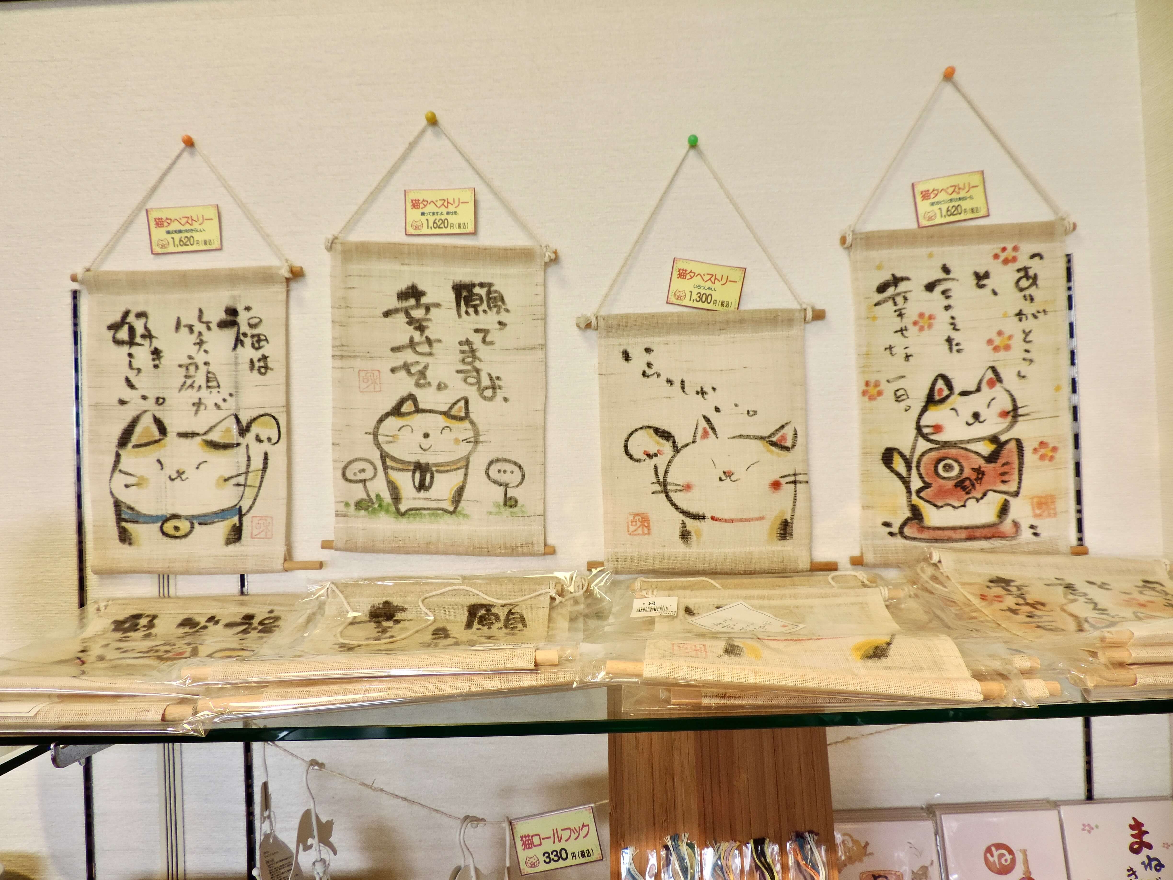 Next to the shrine is a shop that sells so many cat-themed items, from tapestries to statuettes to maneki neko beckoning cats to little figurines. It is one of the cutest stores I have ever walked into.