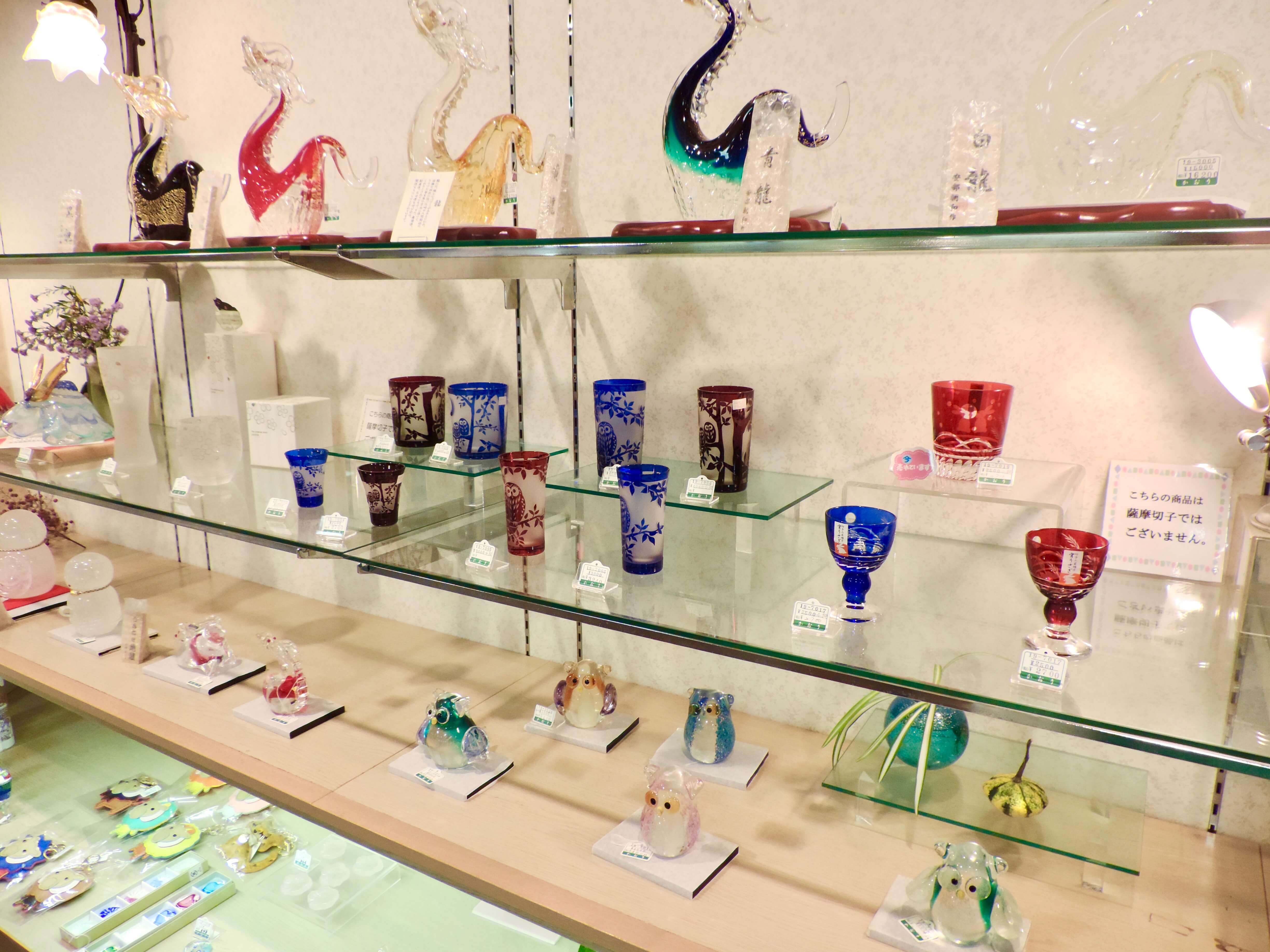 There is also a lovely glass store that sells beautiful items made in the special Satsuma Kiriko style of glassmaking where colored glass is layered onto clear glass.