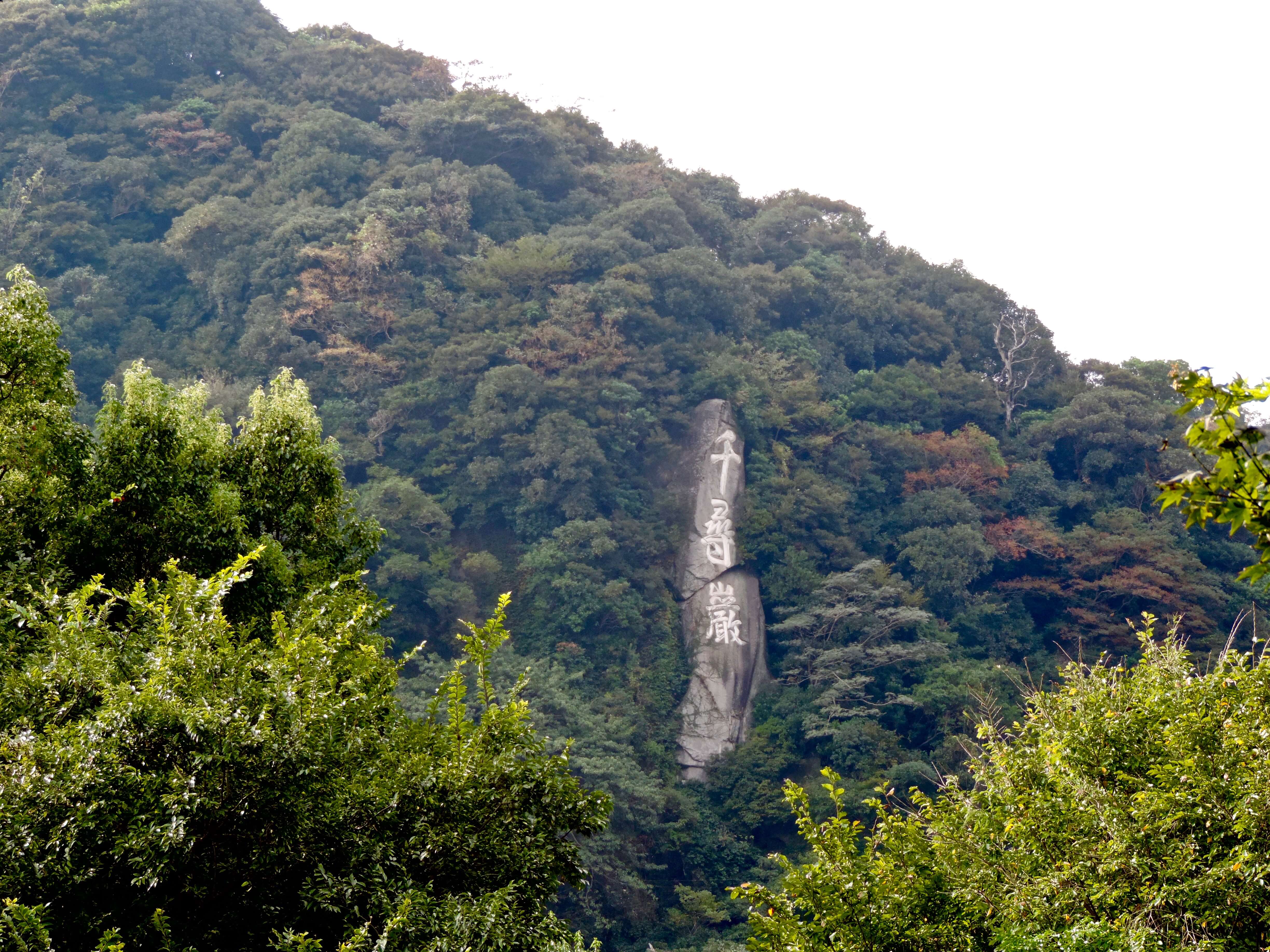 Visible from the gardens is a massive rock carved out on the side of the mountain with Chinese lettering spelling out Senjingan, which translates to “1,000-foot crag.” This became a fixture in the 1810s, and, according to a Japan Times article, it took 3,900 workers to engrave the letters, which are 11 meters tall.